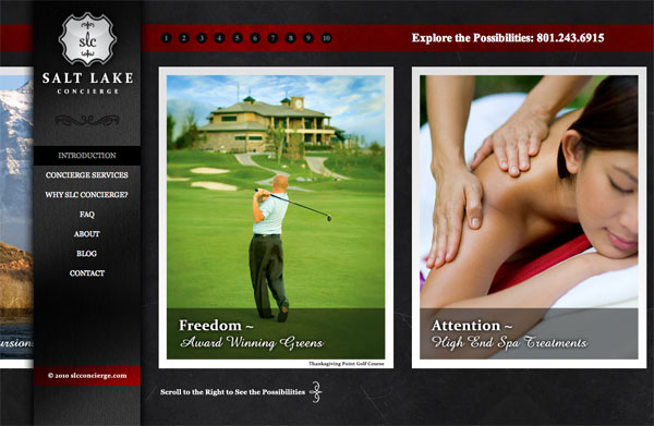 Salt Lake Concierge launches new website – designed and developed by RedOlive. The website features some nifty jQuery with a nearly 4000 pixel wide slider and awesome photos from various Utah attractions. Salt Lake Concierge is a premier lifestyle management and concierge service company. Check out the site: