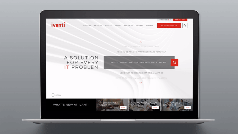 Ivanti was having some homepage interaction pain points in which visitors were stuck in a click-based hierarchy that stopped them from moving beyond the above the fold content. While in our discovery phase with Ivanti’s key Marketing, Design, and Development team members, Red Olive was able to analyze their great insight, analytics and heatmaps to produce accurate user journeys to relieve these pain points. This multi-department collaboration with both companies is exactly how we were able to arrive to the sweet spot between design and function that is sure to produce positive results!